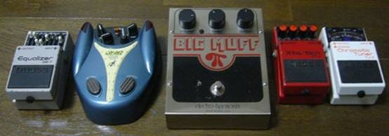 接続順(右から) Boss TU-2 Chromatic Tuner Boss XT-2 Xtortin Electro-Harmonix Big Muff π ( Danelectro Wasabi Forward-Reverse Delay Boss GE-7 Equalizer |